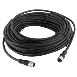M12-C2012 is a shielded cable with straight M12-5 male and female connectors. The five conductors have a cross section of 0.34 mm2. The shield is connected to pin 3 (0V) on the male connector. The jacket is made of black PVC. The length of the cable is 20 meters.